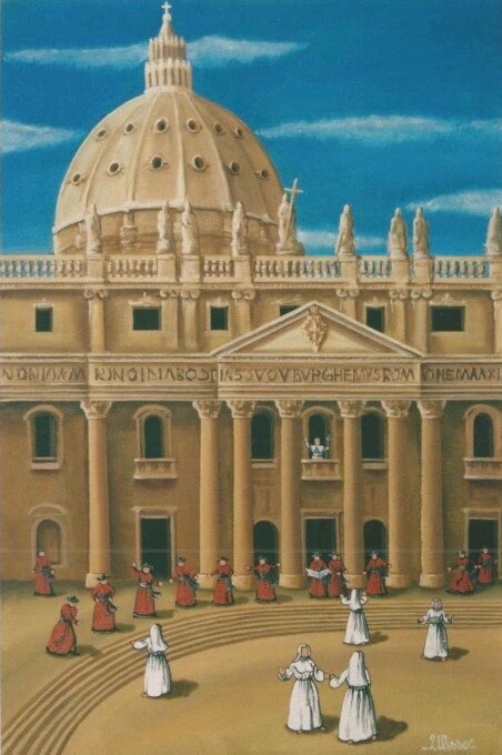 Titolo dell”Opera: “P.zza S. Pietro” Tecnica: Olio su tavola Formato: 40×60 cm verticale Anno: 2001 Opera unica